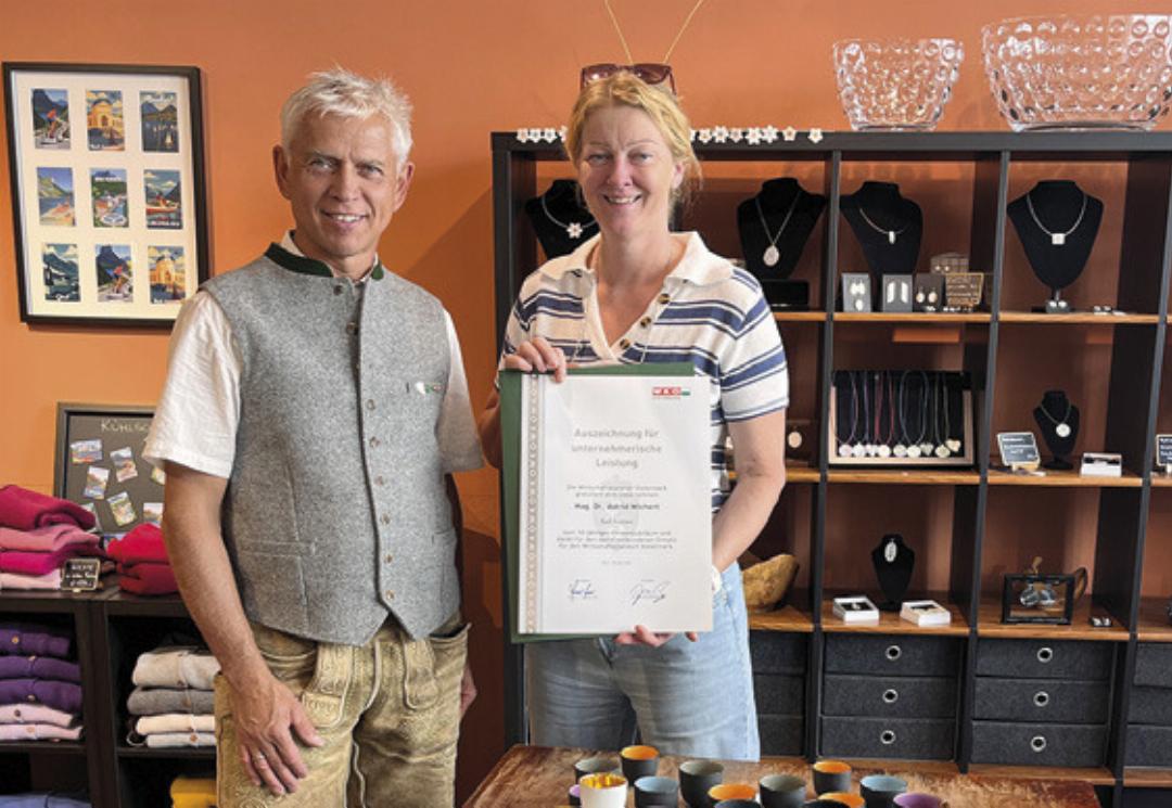 Anlässlich des zehnjährigen Bestehens des Keramik- und Kunsthandwerksbetriebs von Astrid Wichert in Bad Aussee wurde die Unternehmerin von der Wirtschaftskammer mit einer Urkunde ausgezeichnet.