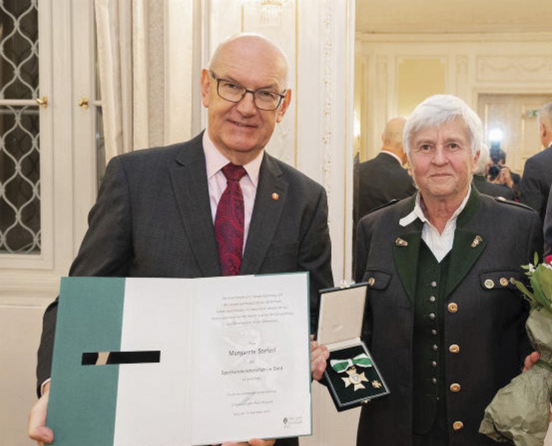 Im Weißen Saal der Grazer Burg überreichte Landeshauptmann und Sportreferent Mario Kunasek, gemeinsam mit Vertretern der drei steirischen Sportdachverbände, Sportunion-Präsident Stefan Herkert, ASVÖ-Präsident Christian Purrer und ASKÖ-Präsident Gerhard Widmann, Sportverdienstzeichen in Bronze, Silber und Gold. Das Landessportehrenzeichen in Gold ging an Margarete Steferl aus Wildalpen