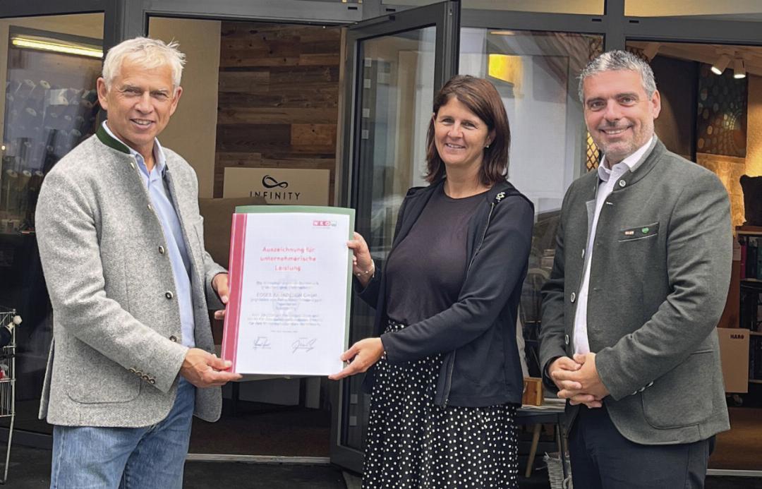Die Egger Raumdesign GmbH aus Schladming feierte 2024 ihr 30-jähriges Bestehen. Seit der Gründung im Jahr 1994 hat sich das Unternehmen als verlässlicher Partner für Innenraumgestaltung etabliert. Von Holzböden und Parkett über Teppiche und Stoffe bis hin zu Sonnenschutzlösungen und Näharbeiten bietet das Unternehmen maßgeschneiderte Lösungen für private und gewerbliche Räume. Anlässlich des Jubiläums überreichten Obmann Egon Hierzegger und Regionalstellenleiter Christian Hollinger von der WKO-Regionalstelle Ennstal/Salzkammergut die Jubiläumsurkunde an Inhaberin Petra Simonlehner-Egger.