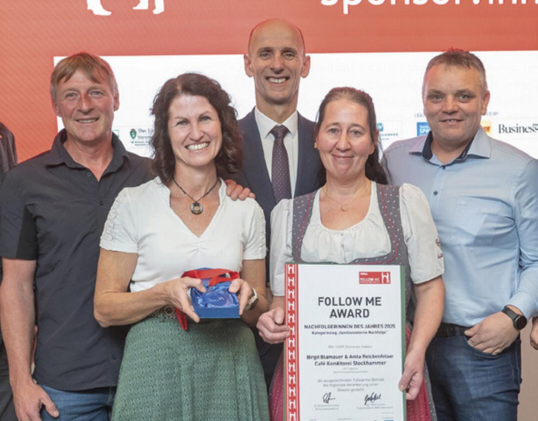 Die Café-Konditorei Stockhammer ist seit Jahrzehnten ein Fixpunkt im Herzen von Admont. Durch die Übernahme durch zwei langjährige Mitarbeiterinnen bleibt das Kaffeehaus erhalten. Anita Reichenfelser begann vor rund 30 Jahren ihre Lehre in der Konditorei und leitet heute die Backstube. Birgit Blamauer ist seit mehr als zwei Jahrzehnten im Betrieb tätig und verantwortet Service, Organisation und Buchhaltung. Beide entschieden sich bewusst für die gemeinsame Selbstständigkeit. Bis zu 13 Mitarbeiter sorgen in der Hochsaison für frische Mehlspeisen, handgemachte Torten und Spezialitäten wie das bekannte „Gesäuse-Kipferl“. Gleichzeitig bringen sie frische Impulse ein – etwa neue Dessertformen, moderne Törtchen oder eine besondere Lebkuchen-Kooperation mit dem Stift Admont. Beim Follow-me-Award 2025 sammelten die beiden im Online-Voting 1459 Stimmen und sicherten sich damit klar den ersten Platz in der Kategorie „Familienexterne Nachfolge“.