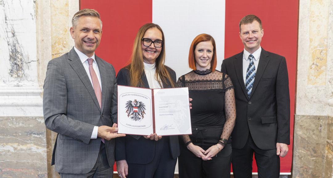 Die Ennstal Milch KG wurde vom Bundesministerium für Wirtschaft, Energie und Tourismus als staatlich ausgezeichneter Lehrbetrieb geehrt. Damit gehört das Unternehmen zu jenen Betrieben in Österreich, die sich in der Qualität der Lehrlingsausbildung besonders hervortun. Ausschlaggebend dafür ist vor allem die praxisnahe und fundierte Ausbildung: Neben der fachlichen Qualifikation stehen persönliche Entwicklung, Teamgeist und Verantwortungsbewusstsein im Mittelpunkt.