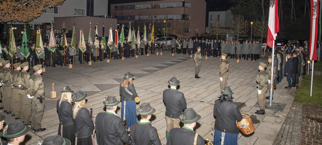 In Aigen im Ennstal fand am vergangenen Wochenende die traditionelle Bezirksgefallenenehrung des Österreichischen Bundesheeres des Garnisonsstandortes Fliegerhorst Fiala-Fernbrugg und des ÖKB-Bezirksverbandes Liezen statt. Zahlreiche Teilnehmer gedachten in feierlichem Rahmen der Gefallenen und Opfer beider Weltkriege. Von den ÖKB-Ortsverbänden nahmen 21 Fahnenabordnungen mit über hundert Kameraden teil, begleitet von einem Ehrenzug der Garnison Aigen. Für die musikalische Umrahmung sorgte der Musikverein Aigen im Ennstal, unterstützt von den Feuerwehren Aigen im Ennstal und Lantschern. Nach dem Festakt erfolgte die Kranzniederlegung durch das Österreichische Bundesheer und den Österreichischen Kameradschaftsbund. Den Abschluss bildeten der feierliche Zapfenstreich, das Niederholen der Fahne unter den Klängen der Landeshymne, das Abmelden der ausgerückten Truppe sowie der Ausmarsch.