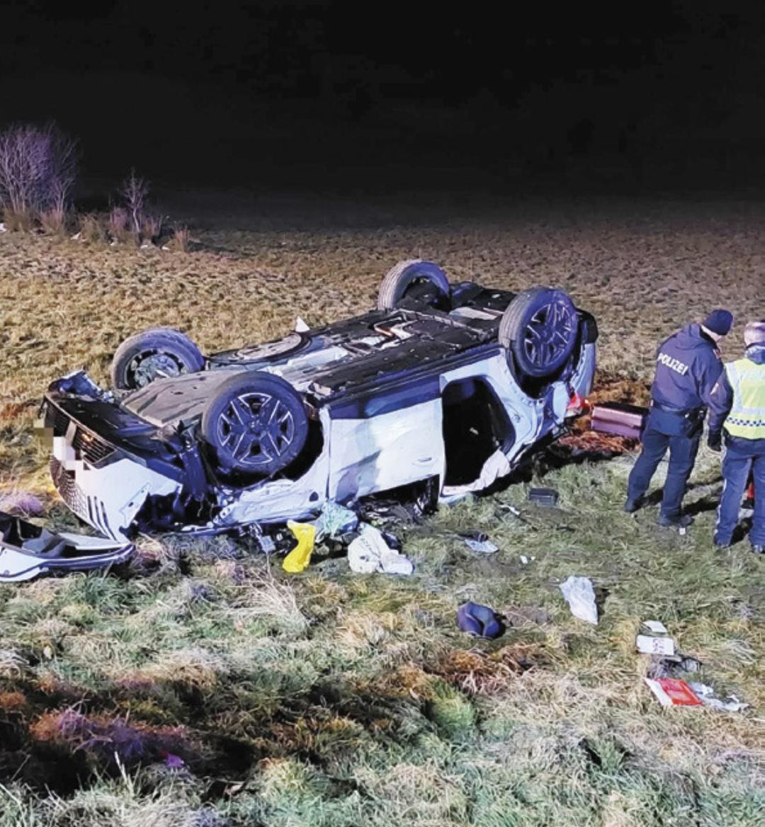 Ein 27-Jähriger kam am Samstag, dem 30. November, bei Mitterberg-Sankt Martin mit seinem Pkw von der Fahrbahn ab und überschlug sich. Dabei wurden alle fünf Fahrzeuginsassen verletzt.