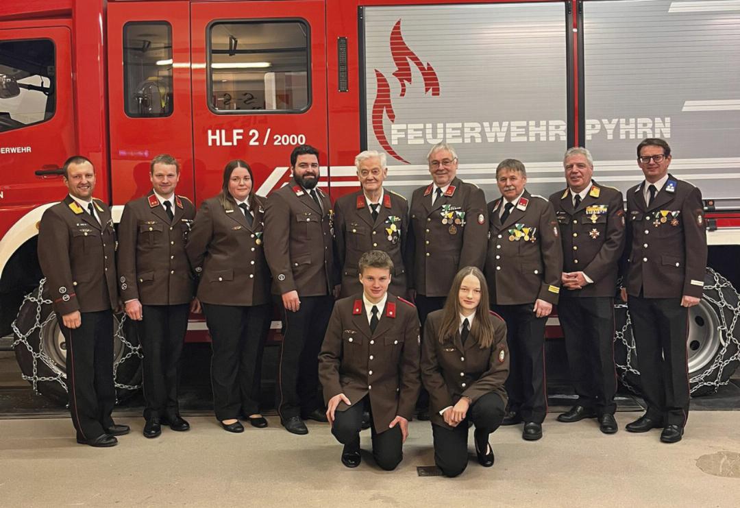 Bei der Versammlung der FF Pyhrn wurde ein Ausblick auf das Jahr 2026 gegeben, der unter anderem geplante Leistungsprüfungen sowie die Einschulung auf das neue Atemschutzfahrzeug (ASF) des Bereichsfeuerwehrverbandes Liezen umfasste. BM Thomas Moßhammer erhielt eine Auszeichnung für 25 Jahre verdienstvolle Tätigkeit im Feuerwehr- und Rettungswesen, OBM Stefan Lemmerer sen. für 50 Jahre. Eine besondere Anerkennung für 60 Jahre Tätigkeit wurde E-HBI Albin Besser zuteil. Darüber hinaus erhielt HLM d. F. Regina Schupfer das Verdienstkreuz 3. Stufe des Bereichsfeuerwehrverbandes Liezen. HBI a. D. Heinz Lemmerer konnte mit dem Verdienstkreuz in Silber des Landes Steiermark gewürdigt werden.