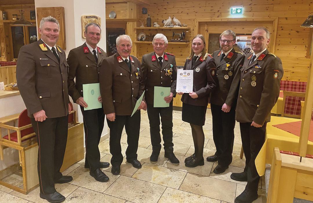 Abgesehen von den Einsätzen war die Abschnittsübung des Abschnittes Schladming ein besonderer Punkt im Bericht der FF Petersberg, da die Übung die Kameraden vor diverse Herausforderungen, wie Probleme mit der Digitalfunkabdeckung und Koordination aller Feuerwehren auf dem begrenzten Raum im Talkessel, stellte. OBI Franz Wieser wurde für 25-jährige Tätigkeit geehrt, HFM Franz Schwarzkogler für 40 Jahre bei der Feuerwehr. HLM Franz Wieser sen. erhielt eine Urkunde für 50 Jahre und HFM Josef Siedler konnte für 60 Jahre Mitgliedschaft ausgezeichnet werden. FF Franziska Schwarzkogler wurde eine Urkunde für das Schwimmabzeichen in Gold zuteil.