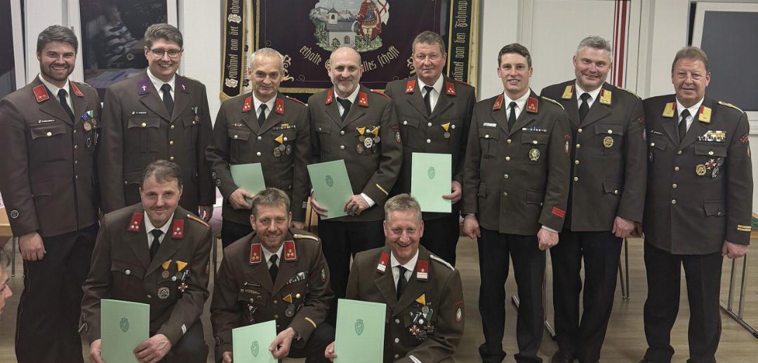 Im Berichtsjahr 2025 führten die Lengdorfer Feuerwehrkameraden in Summe 136 Tätigkeiten – darunter 33 Jugendtätigkeiten – sowie 37 Übungen durch. Erfreuliche Bilanz in der Jugendarbeit: Die Wehr stellte 2025 mit 13 Jugendlichen unter 15 Jahren eine der größten Jugendgruppen im Bezirk. Auch auf Landesebene ließ die FF Lengdorf aufhorchen: In einem Landesbewerb belegte eine Lengdorfer Mädchengruppe den hervorragenden 9. Platz. Ein besonderes Highlight im 120. Bestandsjahr wird das Gründungsfest sein, welches traditionell am Pfingstwochenende, 23. und 24. Mai, am Lengdorfer „Moos“ stattfinden wird. Gleich sechs Kameraden der FF Lengdorf wurde die Medaille für 40 Jahre verdienstvolle Tätigkeit auf dem Gebiet des Feuerwehr- und Rettungswesens verliehen: HFM Thomas Haidler, HFM Friedrich Klein, HBI a.D. Michael Griesebner, LM d. F. Helmut Griesebner, HFM Johann Seebacher sowie HFM Peter Steiner. Für 50 Jahre Feuerwehr-Einsatz geehrt werden konnten HFM Lambert Tranninger und HFM Josef Zefferer. Ein ganz besonders Jubiläum darf EM Helmut Steiner sen. feiern: Er ist seit 70 Jahren Mitglied der FF Lengdorf.