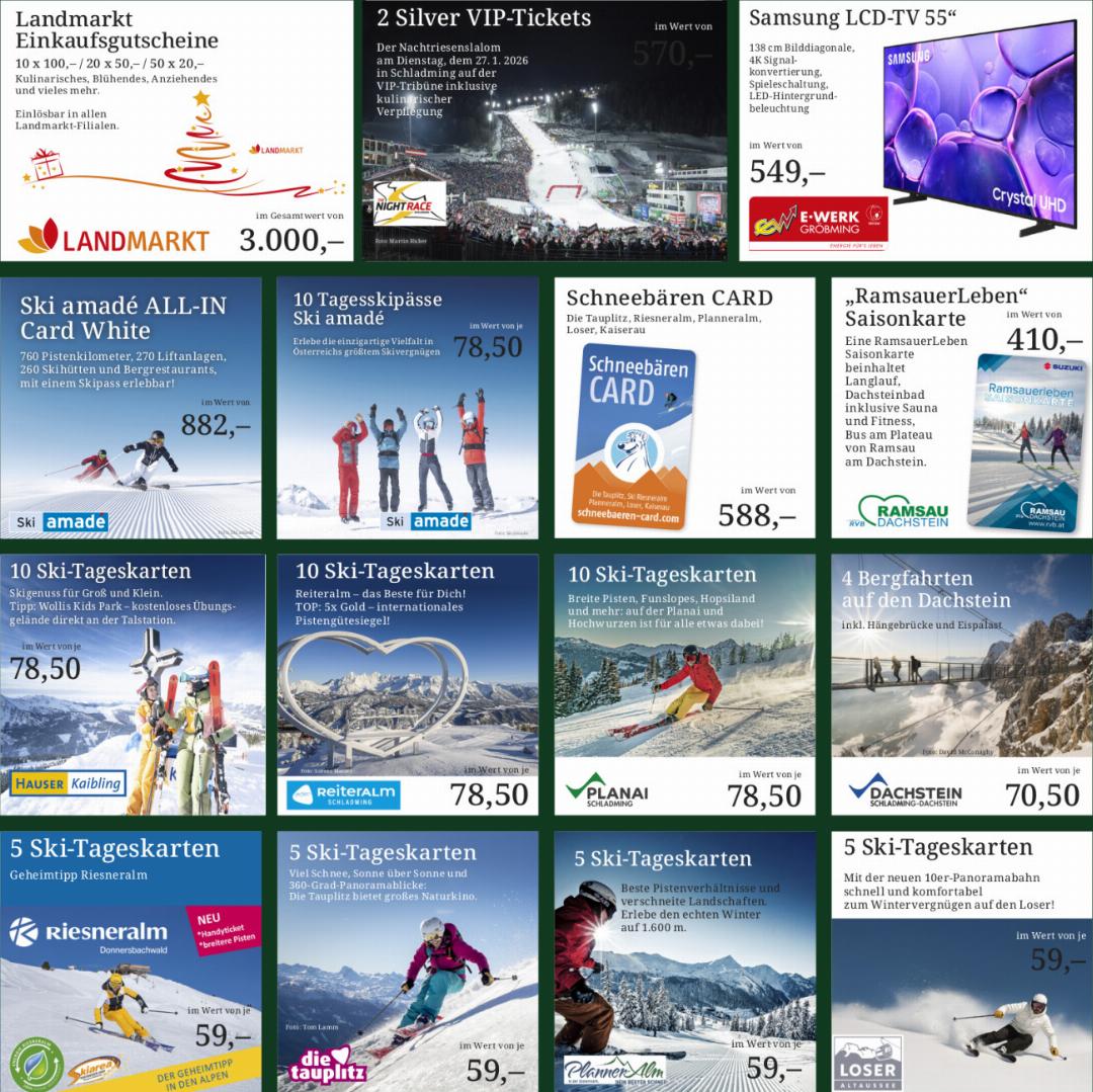 Die Ziehung der Gewinner erfolgt unter Ausschluss des Rechtsweges am Freitag, dem 12. Dezember, in Gröbming. Die Gewinner werden telefonisch verständigt.