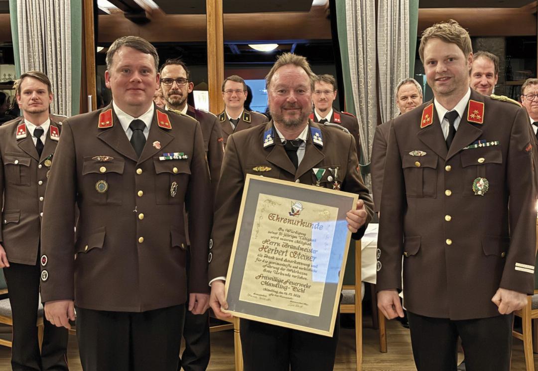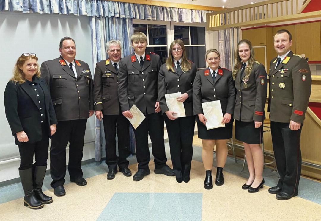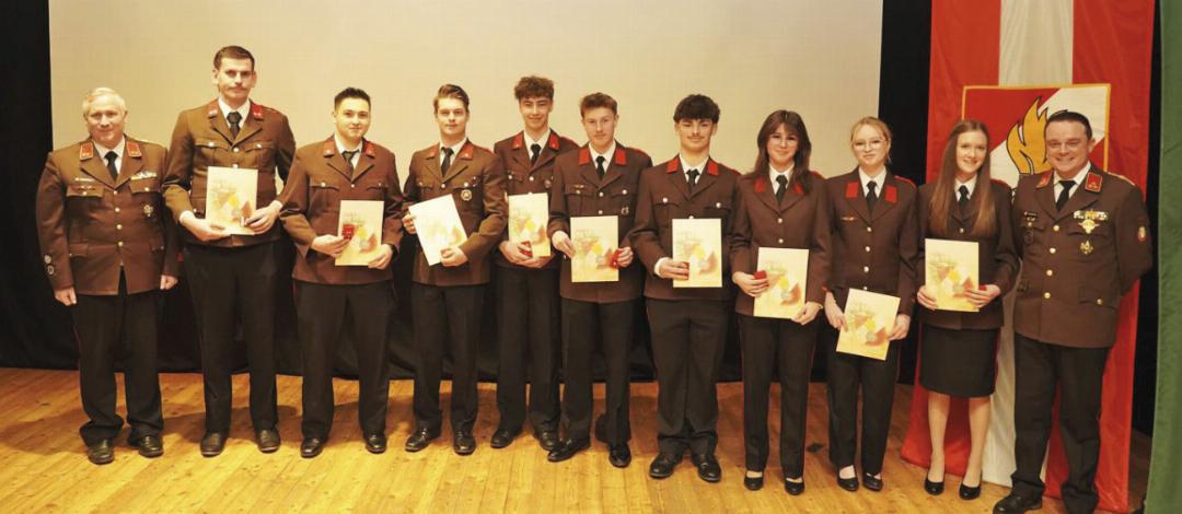 Neben einem gemeinsamen Rückblick auf ein besonderes Jubiläumsjahr gab es bei der FF Irdning einige Angelobungen, Beförderungen, Ernennungen sowie hohe Auszeichnungen zu feiern. Gleich fünf junge Kameraden konnten von der Jugend in der Aktivstand aufgenommen werden: Tamara Plank, Saphira Neuper, Anna-Lena Keiblinger, Patrick Nagy und Florian Sam. HBI Michael Plank und BM Florian Hubner wurden mit der Katastropheneinsatz-Medaille des NÖ-LFV gewürdigt, HLM Josef Steiner mit dem Verdienstzeichen des LFV (2. Stufe) Silber für besondere Leistungen und hervorragende Verdienste auf dem Gebiet des Feuerwehrund Rettungswesens.