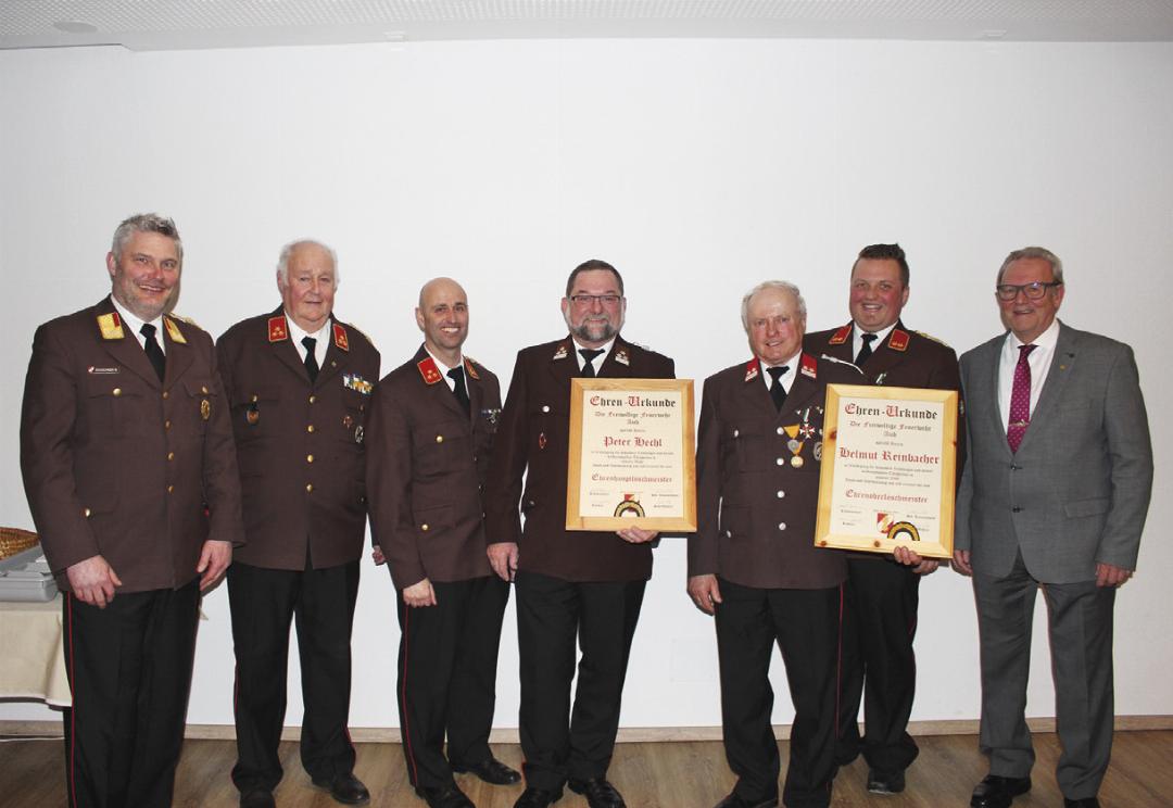 Die FF Aich zählt aktuell 113 Mitglieder, davon fünf in der Feuerwehrjugend. Im abgelaufenen Jahr wurden unzählige Einsätze, Übungen und vielfältige weitere Tätigkeiten bewältigt. Andreas Schrempf wurde im Zuge der Wehrversammlung feierlich angelobt und in den Aktivstand der FF Aich übernommen. Den Höhepunkt der Wehrversammlung bildete die Ernennung zweier verdienter Kameraden zu Ehrendienstgraden: HLM d.F. Peter Hechl und OLM Helmut Reinbacher wurden für ihre außergewöhnlichen Leistungen und ihr langjähriges Engagement zu Ehrendienstgraden ernannt.