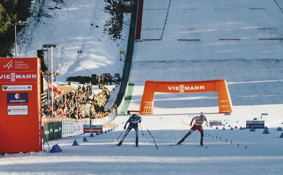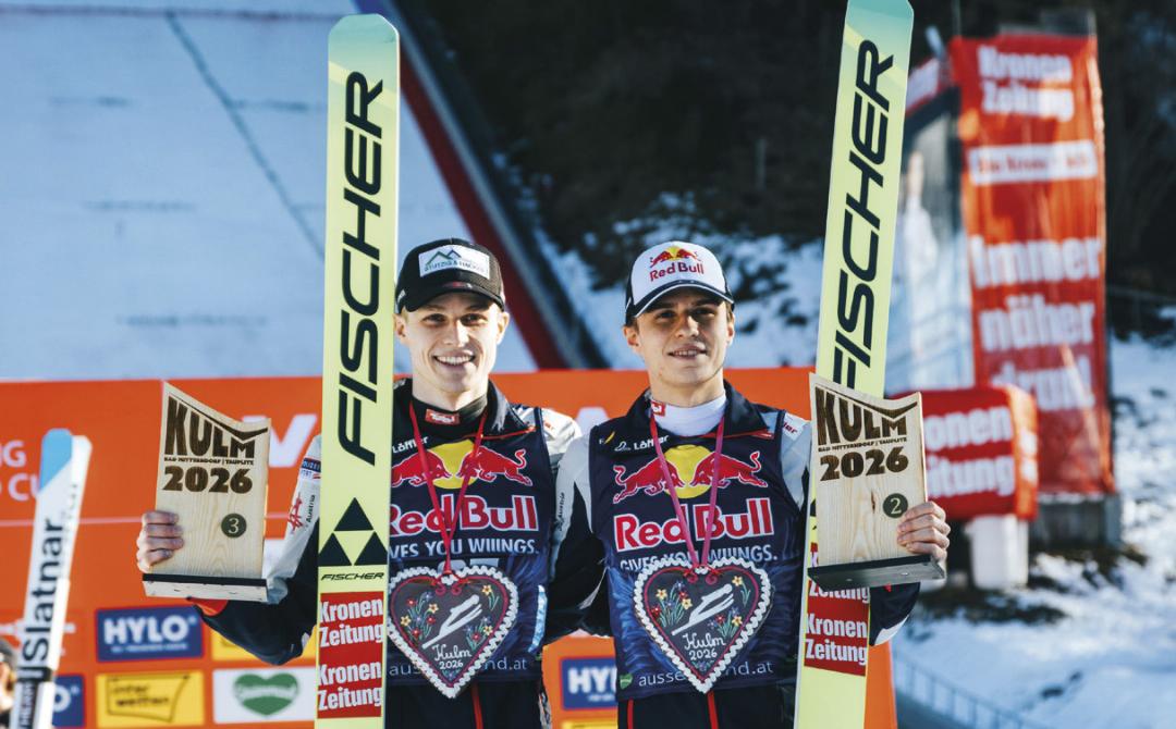 Wo sonst nur die Skiflug-Asse abheben, feierten die Kombinierer eine Weltpremiere. Zum ersten Mal in der Geschichte der Nordischen Kombination fand ein Bewerb auf einer Skiflugschanze statt – und das vor 5200 begeisterten Fans in Bad Mitterndorf/ Tauplitz. Gleich nach den Olympischen Spielen bot der Kulm die Bühne für eine spektakuläre Premiere, bei der sportliche Höchstleistungen und Emotionen Hand in Hand gingen. Auf der Skiflugschanze sorgte Österreichs Aushängeschild Johannes Lamparter am Freitag mit einem Flug auf 236,5 Meter für Aufsehen. Obwohl er dabei in den Schnee griff und somit Punkteabzüge bei der Landung hinnehmen musste, sicherte er sich den Sieg im Sprungdurchgang vor Marco Heinis (FRA) und Ilkka Herola (FIN). In der anschließenden Langlaufentscheidung startete Lamparter als Erster in den Compact-Bewerb, gefolgt von Heinis (+6 Sek.) und Herola (+12 Sek.). Auf der 7,5 Kilometer langen Strecke – mit Start und Ziel direkt im Auslauf der mächtigen Skiflugschanze – entwickelte sich ein packendes Rennen. Schließlich hatte der Finne Herola hauchdünn die Nase vorn und krönte sich zum Sieger. Johannes Lamparter musste sich trotz gro- ßem Kampf nur knapp geschlagen geben und belegte Rang zwei. Den dritten Platz sicherte sich Johannes Rydzek (GER).