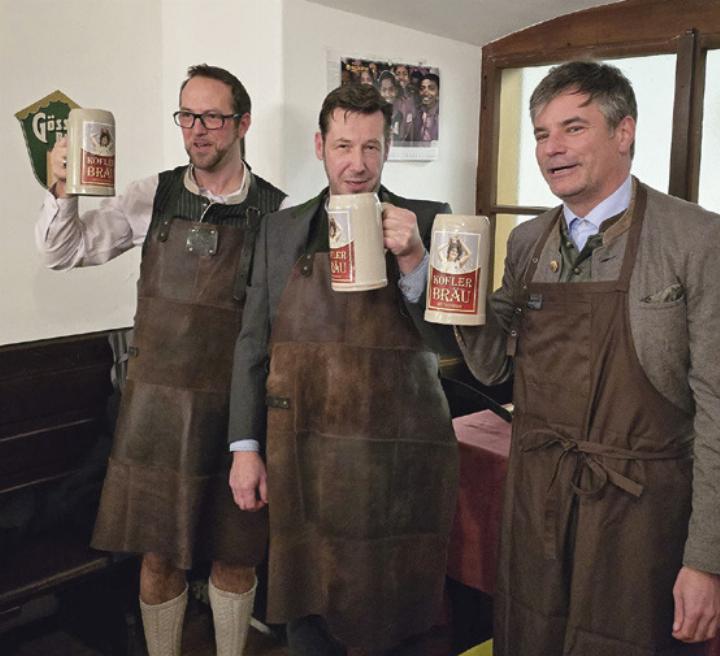 Zum bereits zehnten Mal lud die SPÖ Rottenmann zum Bockbieranstich in das historische Gebäude, den Alten Hofer, in Rottenmanns Innenstadt. Das Bier selbst stammte aus der ortsansässigen Brauerei Kofler. Das erste Fass wurde von NAbg. Wolfgang Moitzi (re.) angezapft, natürlich unter fachkundiger Aufsicht von Brauereichef Harald Kofler (Mitte). Für die musikalische Umrahmung des Abends sorgte das „Xeis-Trio“. Vzbgm. Klaus Baumschlager (li.) prostete mit dem traditionellen Tonkrug zu.