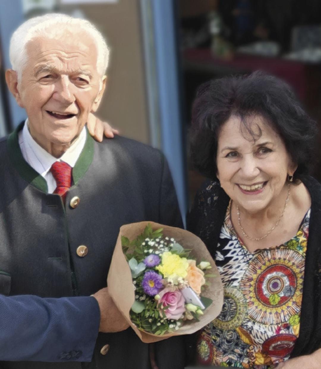 Geburtstag begingen die Eheleute ihren 66-jährigen Hochzeitstag. 1959 schlossen die beiden im Standesamt Altenmarkt und in der Stiftskirche in Admont den Bund fürs Leben. Die „Schnittlauchhochzeit“ spielt auf die Widerstandskraft und Langlebigkeit des Schnittlauchs an. Das Paar blickt mit Freude auf drei Kinder, sieben Enkelkinder und zehn Urenkelkinder. Franz Moser, langjähriges Mitglied und Kapellmeister der örtlichen Musikkapelle, ist Ehrenringträger der Gemeinde Wei- ßenbach und Träger des Ehrenzeichens in Gold des Steiermärkischen Blasmusikverbandes.