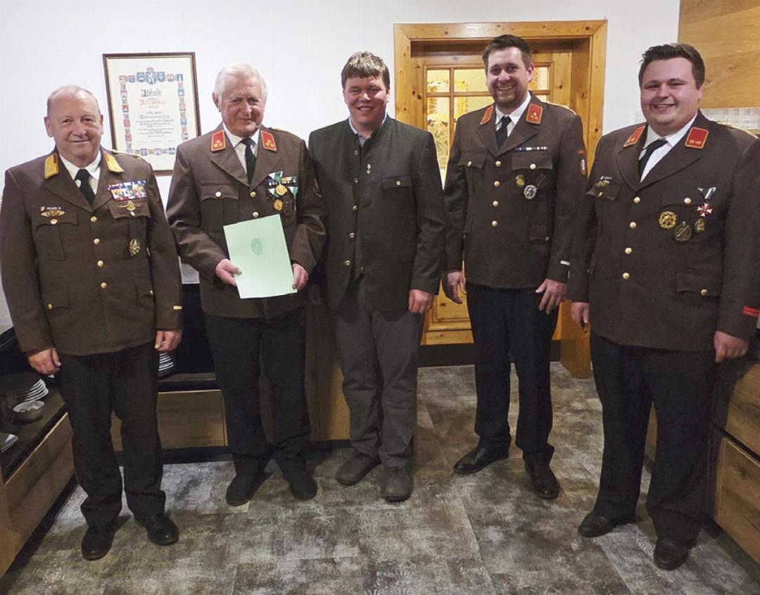 Die Feuerwehr Mitterberg musste im vergangenen Jahr zu 24 Einsätzen ausrücken. Der Mitgliederstand beträgt derzeit 107 Kameraden. Ein besonderer Punkt der Wehrversammlung war die Übergabe der Schriftführer-Tätigkeit: Christoph Perhab legte sein Amt zurück. Mit Roland Schupfer konnte jedoch ein engagierter Nachfolger gefunden werden. Die FF Mitterberg kann sich auch über ein neues Mitglied freuen: Kilian Prüggler wurde feierlich angelobt.
