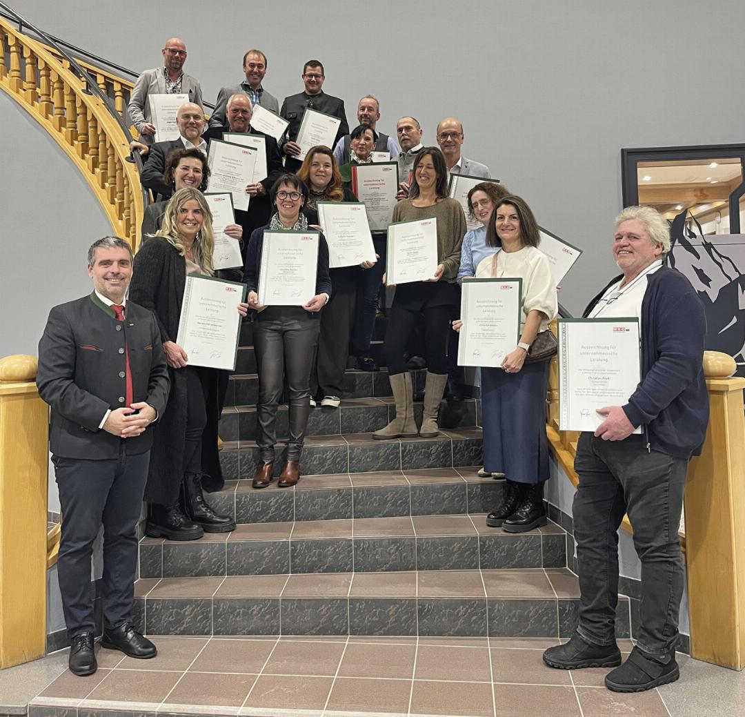 In der WKO-Servicestelle Gröbming fand die feierliche Ehrung von Unternehmern statt, die seit 10, 20 oder 40 Jahren erfolgreich selbstständig tätig sind. Für zehn Jahre wurden Ruth Barbara Brückler, Mathilda Ladreiter, August Gaßner, Daniela Hüttenbrenner, Jürgen Mugitsch, Stefanie Pulsinger, Hubert Loschek, Gerhard Rudolf Schüßler, Gottfried Strohmeier und Elvira Lemmerer geehrt. Eine Auszeichnung für 20 Jahre Selbstständigkeit erhielten Karin Amon, Bianca Maria Hasler, Josef Lorbeck, Christian Preßl, Christina Stocker und die Succon Schachner & Partner KG. Christiane Johanna Eder und Stefan Treschnitzer konnten für 40-jähriges Jubiläum geehrt werden.