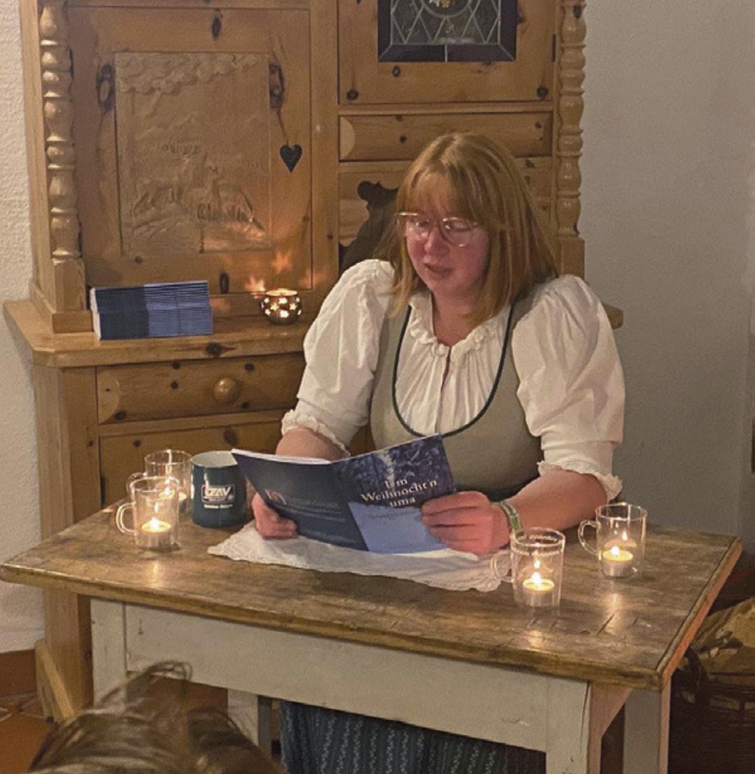Am vergangenen Freitag präsentierte Rebecca Maderebner ihren neuen Gedichtband „Um Weihnochtn uma“. Die „Gute Stube“ des Berghauses war bis auf den letzten Platz gefüllt, und schon beim Eintreten lag ein Hauch von Vorweihnachtszauber in der Luft. Für die musikalische Umrahmung sorgte feine Zithermusik, die den Gedichten einen warmen, traditionellen Klangteppich verlieh. Dazu gab es Glühwein, passend zur winterlich verschneiten Landschaft des Walchentals. Rebecca Maderebner las ausgewählte Texte aus ihrem Gedichtband und begeisterte das Publikum mit ihrer authentischen, mundartnahen Sprache. Die Zuhörer folgten den stimmungsvollen, teils humorvollen, teils besinnlichen Gedichten aufmerksam und belohnten die Autorin mit herzlichem Applaus.