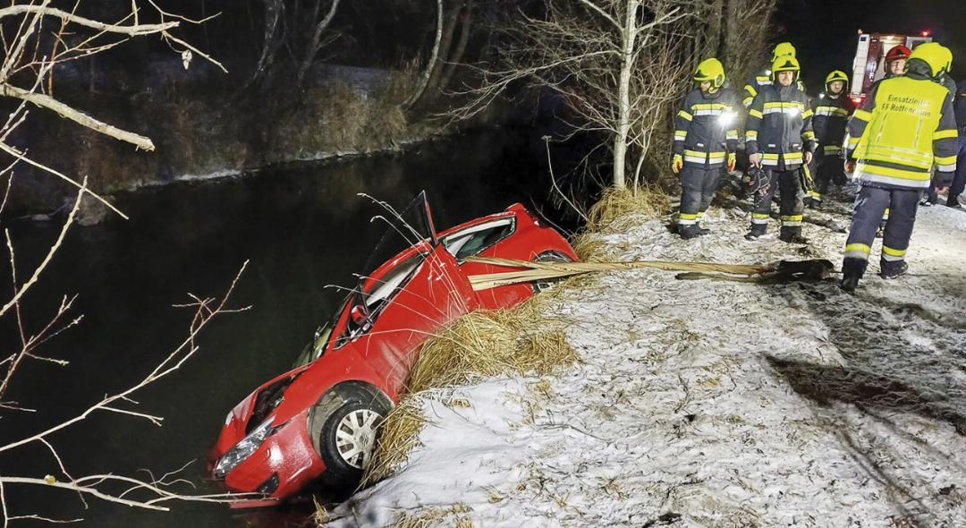Bereits am Donnerstagnachmittag, dem 8. Jänner, kam es in Rottenmann zu einem gefährlichen Zwischenfall. Ein 62-jähriger Mann aus dem Bezirk Liezen kam gegen 16.50 Uhr im Ortsteil Büschendorf mit seinem Pkw von der Fahrbahn ab. Das Fahrzeug blieb am Ufer der Palten stehen und drohte in den Fluss zu stürzen. Die Einsatzkräfte der Feuerwehr Rottenmann sicherten das Fahrzeug und retteten den Lenker aus dem Pkw. Der Mann erlitt eine starke Unterkühlung und wurde nach der Erstversorgung ins LKH Rottenmann gebracht. Die Bergung des Fahrzeugs erfolgte durch die Feuerwehr Rottenmann mit 18 Kräften und vier Fahrzeugen.